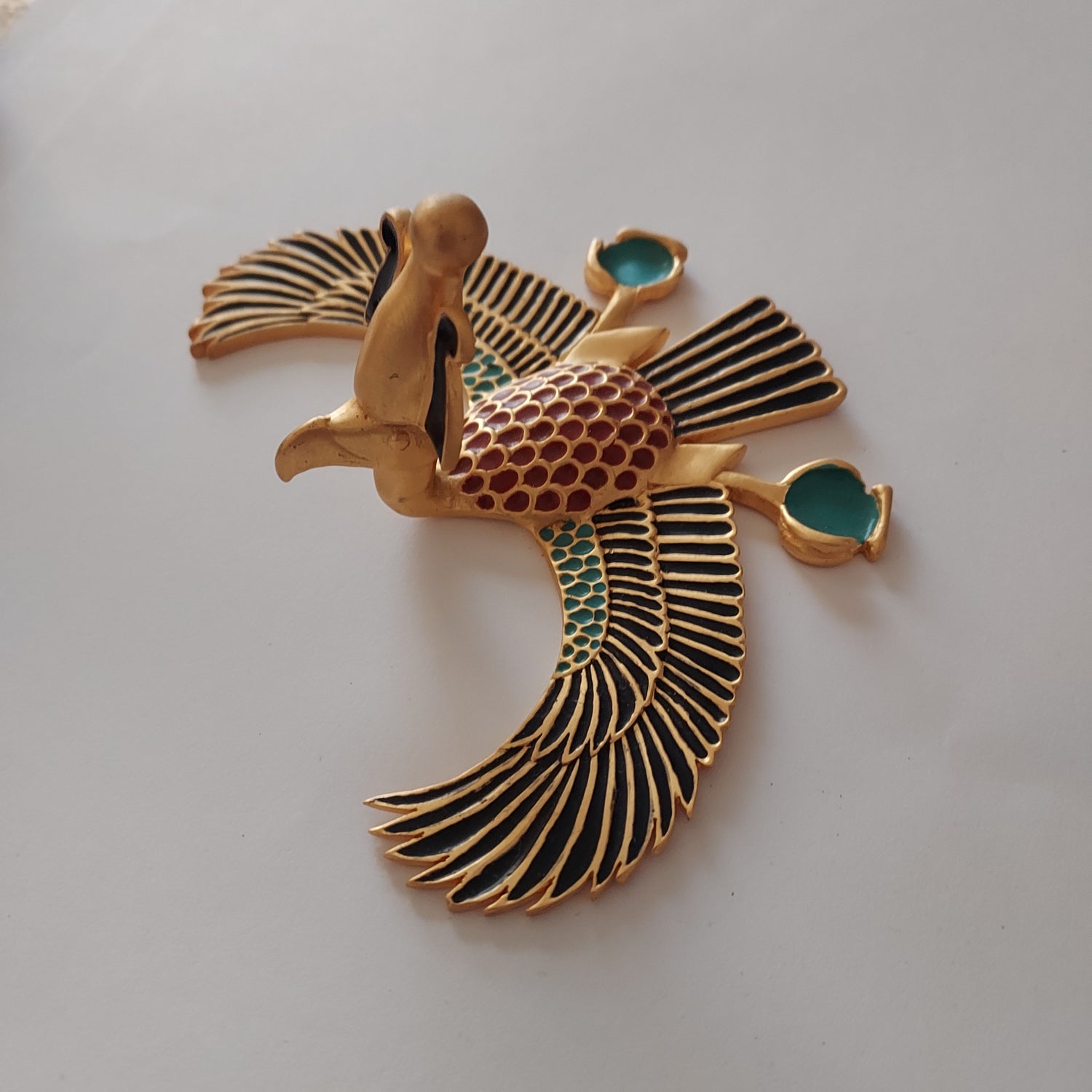 Cast in pewter, gold plated in 24K gold and hand painted enamel. Available for purchase, email for query.