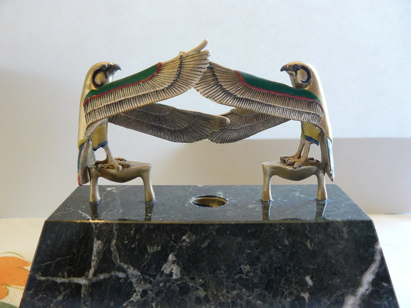 Dual falcons pen holder